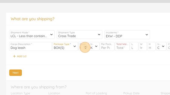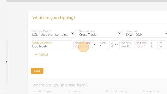 5. Under "What are you shipping?" Enter in your details.