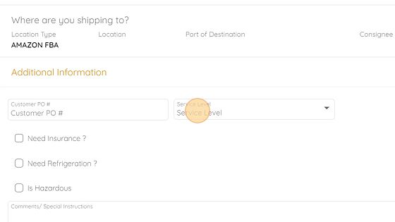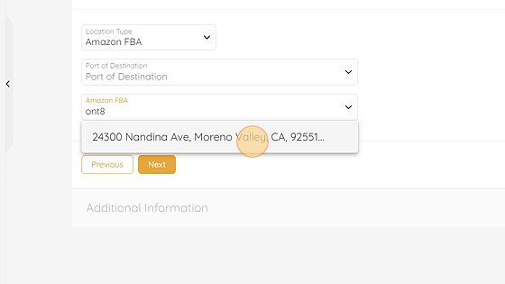 In this example, the cargo is being delivered to an FBA center, so the selection is Amazon FBA**