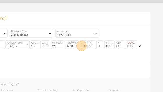 13. Now, just add your box (MC) or pallet dimensions in L / W / H.