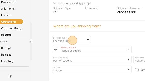 26. If you need to deliver your cargo into a 3PL, under Location Type, please choose "Factory / Warehouse" and select your Consignee via your Consignee's list. If you pre-entered this in the Customer Party tab, you can select your Consignee from the drop down menu.
